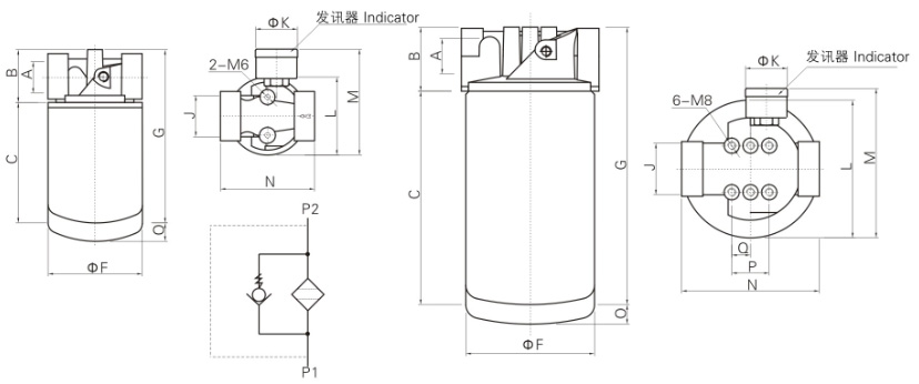 4、濾頭上設(shè)有安裝污染堵塞發(fā)訊器孔,以便檢測濾芯使用情況